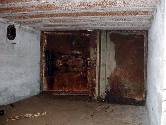Vue de la casemate de type 505 du Portzic : intérieur, porte blindée à deux battants de la chambre de tir de type 447P01Immatriculation