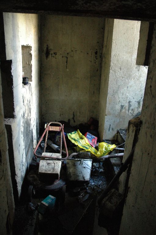 Vue de l'ensemble fortifié de la pointe du Renard : abri de type 601 pour canon antichars avec toit blindé, intérieurImmatriculation