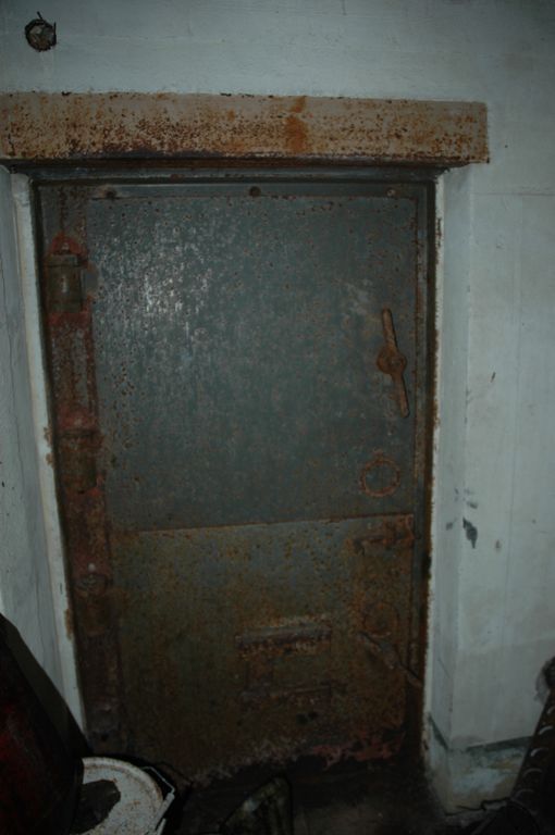 Vue de l'ensemble fortifié de la pointe du Renard : abri pour canon antichars avec toit blindé de type 601, intérieurImmatriculation