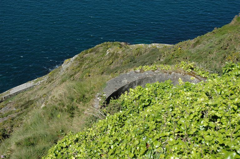 Vue du poste de commande des projecteurs français de la pointe de Cornouaille depuis l'abri bétonné allemandImmatriculation