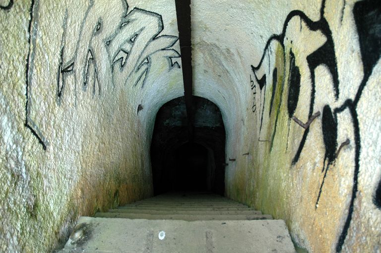 Vue du magasin à poudre sous roc des Capucins : entrée, escalier d'accèsImmatriculation