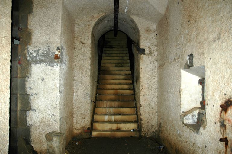 Vue du magasin à poudre sous roc des Capucins : pied de l'escalierImmatriculation