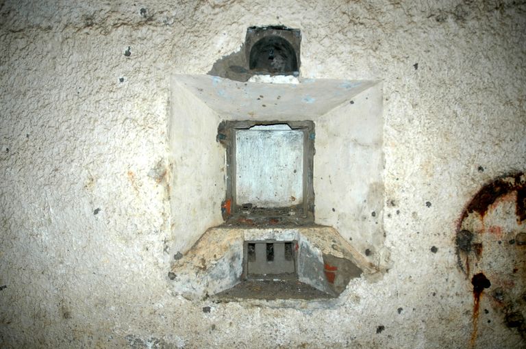Vue du magasin à poudre sous roc des Capucins : créneau de lampeImmatriculation