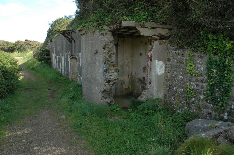 Vue de la batterie de gauche des Capucins : entrée du magasin à munitions en béton armé sous le massif de la traverse d'extrémité de gauche construit en 1898Immatriculation