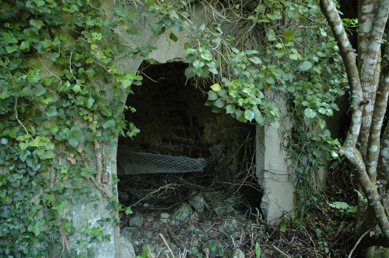 Vue du magasin à poudre terrassé en tranchée situé à mi-chemin entre la batterie de 24 cm et la batterie de 32 cm des Capucins construit entre 1882 et 1884 en maçonnerie recouverte de terreImmatriculation