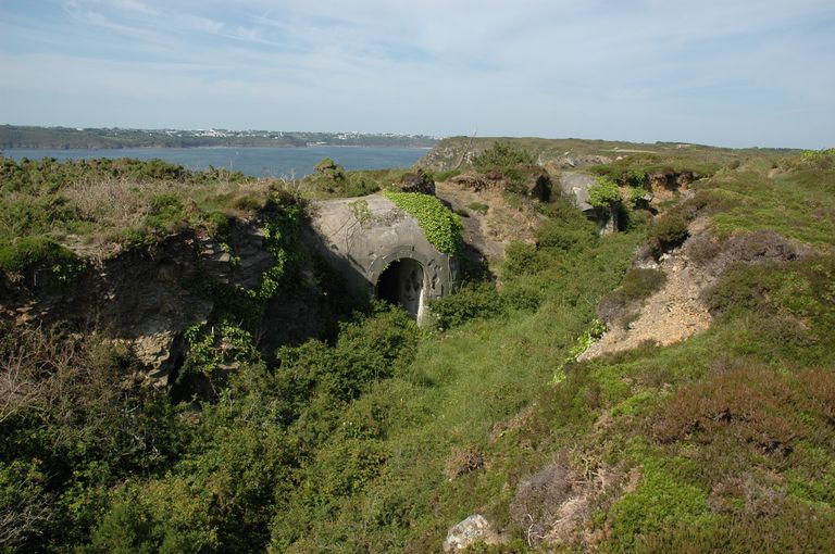 Roscanvel, pointe de Kerviniou : batterie de 4 canons de 24 cm de Kerviniou, entrées du magasin à poudre sous rocImmatriculation