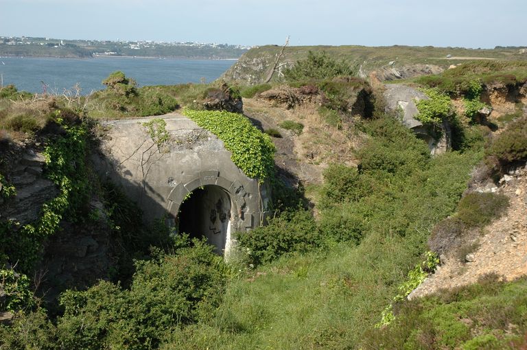 Roscanvel, pointe de Kerviniou : batterie de 4 canons de 24 cm de Kerviniou, entrées du magasin à poudre sous rocImmatriculation
