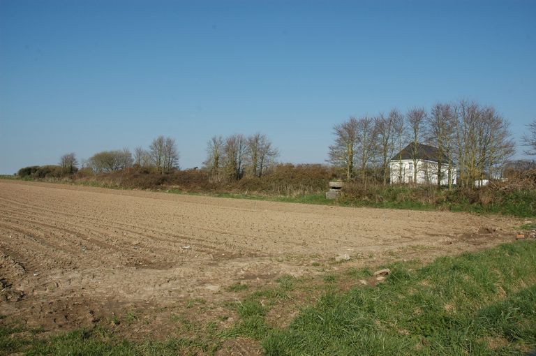 Vue de situation de l'ensemble fortifié situé à l'ouest de Plougonvelin de part et d'autre de la Départementale n° 85 : poste d'observation dit Tobrouk sous masque orienté vers l'ouestImmatriculation