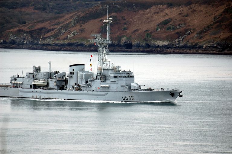 Vue d'un navire de la Marine Nationale (D 646) dans le goulet de BrestImmatriculation