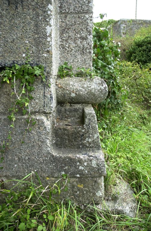Vue du fort de Lanvéoc : porte monumentale datée de 1878, détail du support en granite du pont-levis basculantImmatriculation