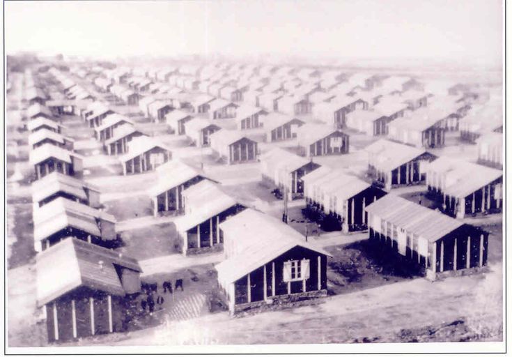 Vue générale des baraques du Polygone-butte vers 1950 (source : Amis de Recouvrance - Photo n° 57 de l'ouvrage "Brest 1940, 1944, 1960 l'Occupation, la Libération, la reconstruction" de René Le Bihan, p.71, coté Bh5/4)Immatriculation