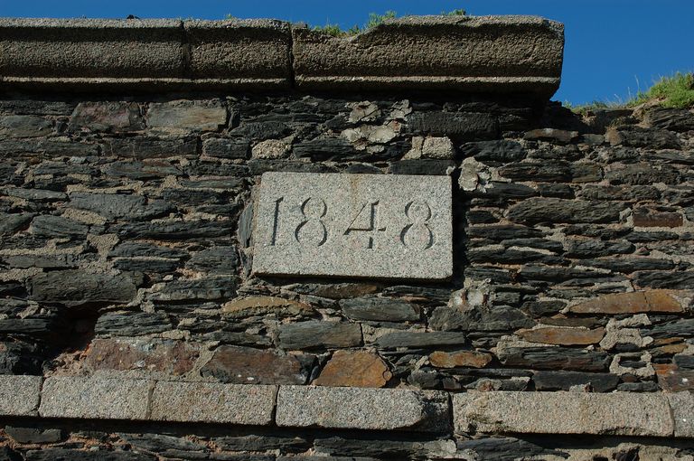 Vue du pignon nord-est de la caserne portant la date de construction : 1848Immatriculation