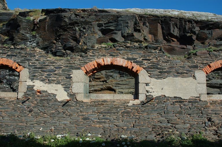 Vue d'une baie de la caserne. Les baies ébrasées vers l'intérieur sont voutées en segment à claveaux : appui, pièdoits en granite et arc en briqueImmatriculation