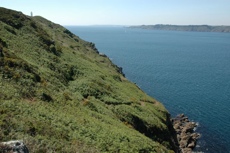 Vue du poste lance-torpilles de la pointe de Cornouaille. Situé au ras de l'eau, à l'est de la batterie de BeaufortImmatriculation