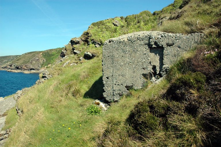 Vue du poste lance-torpilles de la pointe de Cornouaille. Situé au ras de l'eau, à l'est de la batterie de BeaufortImmatriculation