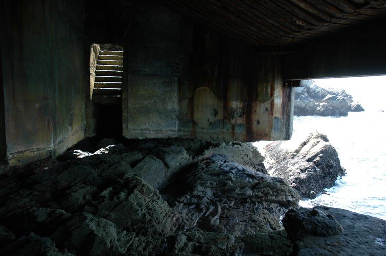 Vue du poste lance-torpilles de la pointe de Cornouaille. Situé au ras de l'eau, à l'est de la batterie de BeaufortImmatriculation