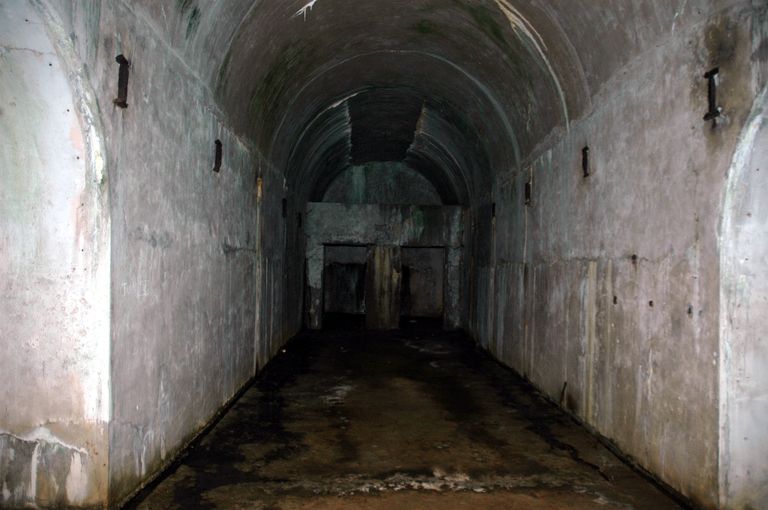 Vue du poste lance-torpilles de la pointe de Cornouaille. Situé au ras de l'eau, à l'est de la batterie de BeaufortImmatriculation