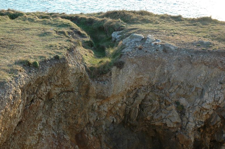 Vue de l'ensemble fortifié allemand de Porz Tévigné : vestiges d'une tranchéeImmatriculation