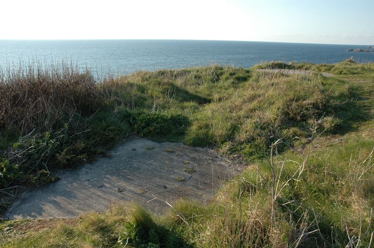 Vue de la pointe de Corsen à Plouarzel : emplacement pour deux canons Lahitolle de 95 mm.Immatriculation