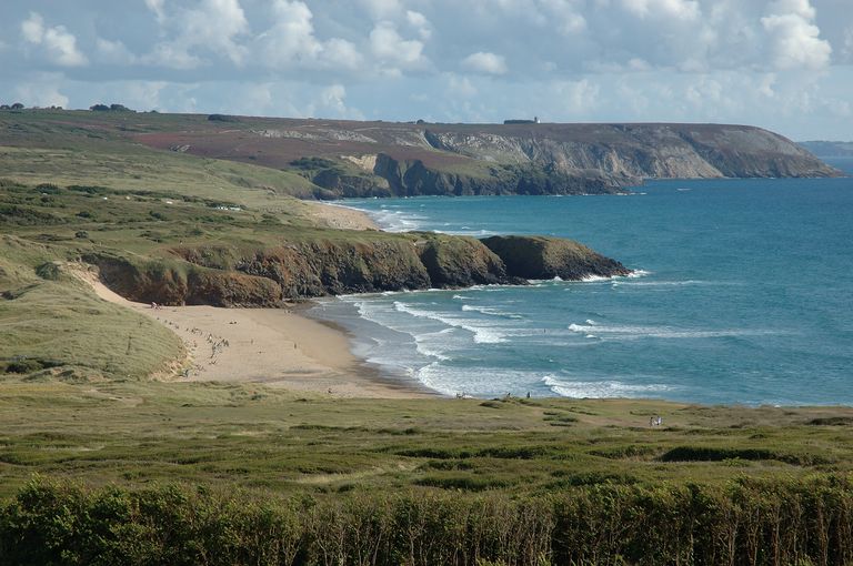 Crozon : vue des plages de Lostmarc'h et la Palue. En arrière plan : le cap de la ChèvreImmatriculation