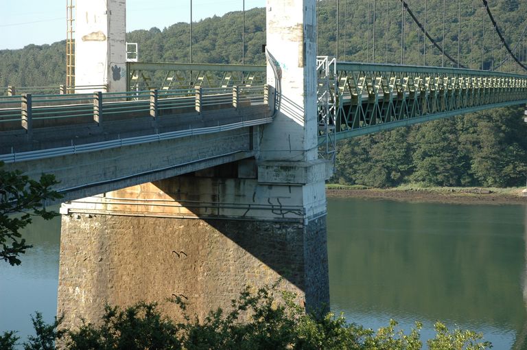 Rosnoën : vue du pont de Térénez (le premier pont de 1925-1926 détruit en 1944 est reconstruit entre 1945 et 1951)Immatriculation