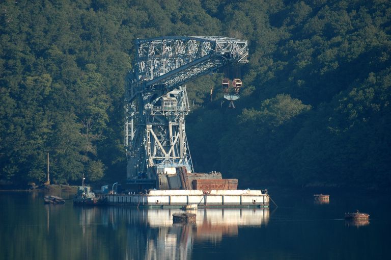 L'Aulne maritime : ponton-grue construit de 1933 à 1934 de l'arsenal de Brest sur une barge en 2004 dans l'anse de PenfornImmatriculation
