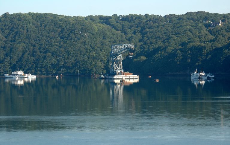 L'Aulne maritime : ponton-grue construit de 1933 à 1934 de l'arsenal de Brest sur une barge en 2004 dans l'anse de PenfornImmatriculation