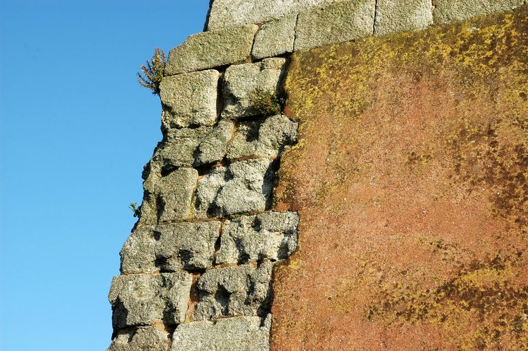 Vue de la Tour Vauban : impacts de boulets sur la face occidentale de la tour (une trentaine d'impacts sur 2 mètres carrés)Immatriculation