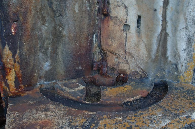 Roscanvel, pointe Robert : abri du groupe de deux projecteurs (60 cm et 90 cm de diamètre), détail du dispositif de fermeture des voletsImmatriculation