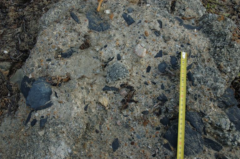 Vue des vestiges de la batterie nord de la Plage de Trez-Rouz. Maçonnerie en blocs de schiste et granite assemblés au mortierImmatriculation