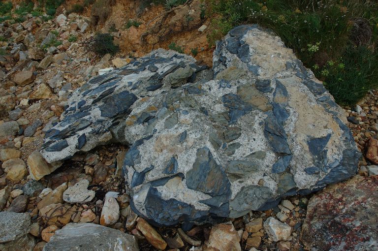 Vue des vestiges de la batterie nord de la Plage de Trez-Rouz. Maçonnerie en blocs de schiste et granite assemblés au mortierImmatriculation
