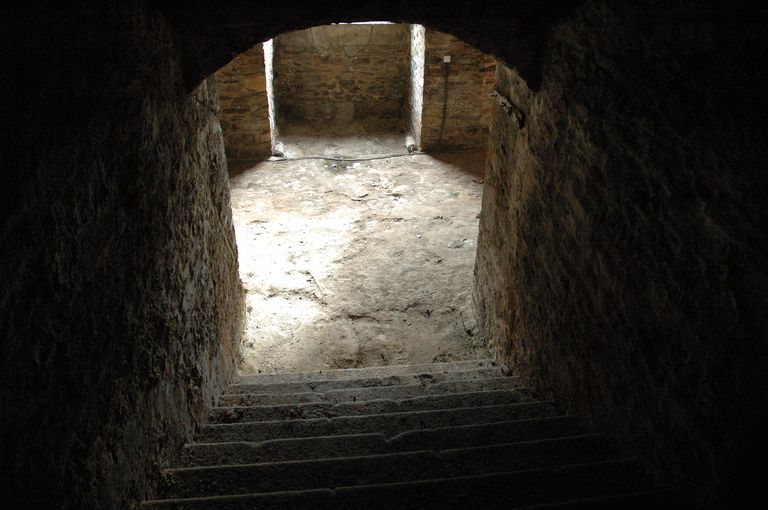 Vue intérieure : galerie voûtée du sous-sol depuis l'escalier d'accèsImmatriculation