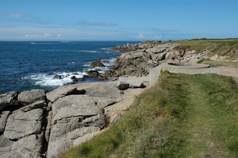 Ensemble de deux batteries de côte, corps de garde, magasin à poudre et guérite puis ensemble fortifié allemand (Re 22), Le Roz (Lanildut),