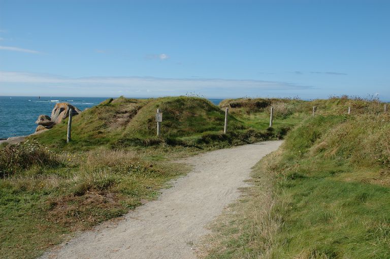 Ensemble de deux batteries de côte, corps de garde, magasin à poudre et guérite puis ensemble fortifié allemand (Re 22), Le Roz (Lanildut),