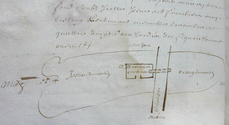 Dessin schématique à la plume, arpentage de la commanderie de La Feuillée, 1701 (A. D. Finistère, 41 H 6)Immatriculation