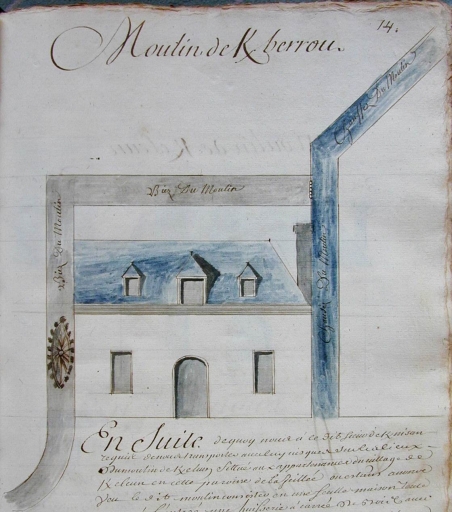dessins à la plume aquarellés et description des bâtiments, 1731 (A. D. Finistère, 41 H 5)Immatriculation