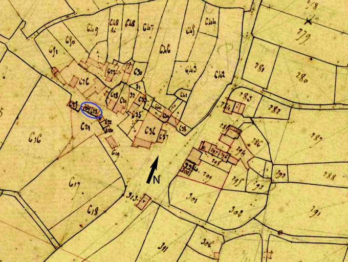 Localisation sur le cadastre de 1835, assemblage des sections E 1 et F (A. D. Finistère, 3 P 124)Immatriculation