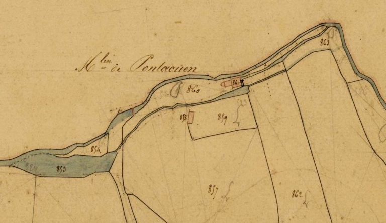 Moulin de Pontaouen. Extrait du cadastre de 1835, section B2 (A.D. Finistère, 3 P 124)Immatriculation