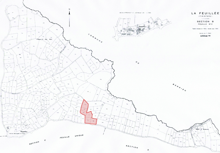 Extrait du cadastre de 1986, section B 2, localisation du site inscritImmatriculation