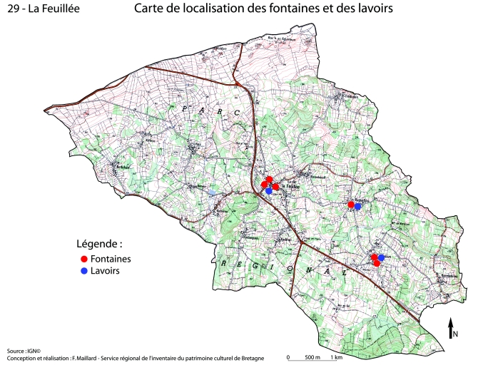 Fontaines et lavoirs sur la commune de La Feuillée,