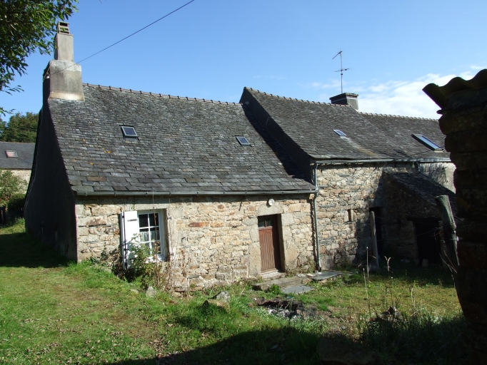 12. Ferme repérée : logis à pièce unique et étable en alignement avec soue en appentis, début 19e siècle (fenêtre refaite fin 19e siècle). Section B parcelle 202. Vue générale sud-ouestImmatriculation