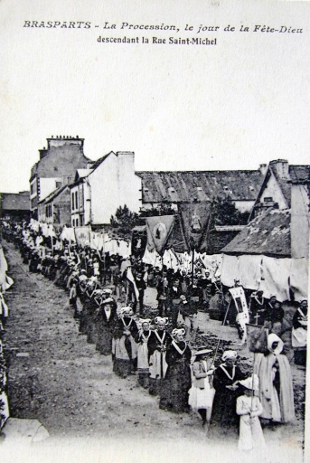 La rue Saint-Michel (act. rue de la Mairie), vers 1900. Carte postale (A.D. Finistère, 2 Fi 16)Immatriculation