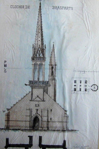 Elévation ouest. Dessin par Joseph Bigot, 1868 (A. E. Quimper, 8 L XII, 47)Immatriculation