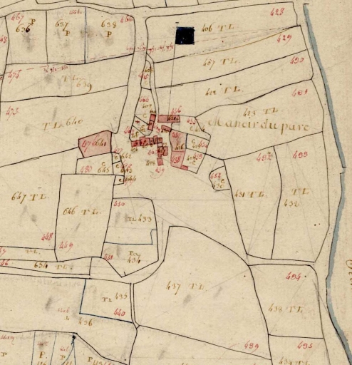Le hameau en 1812. Extrait du cadastre, section D 2 (A.D. Finistère, 3 P 19)Immatriculation