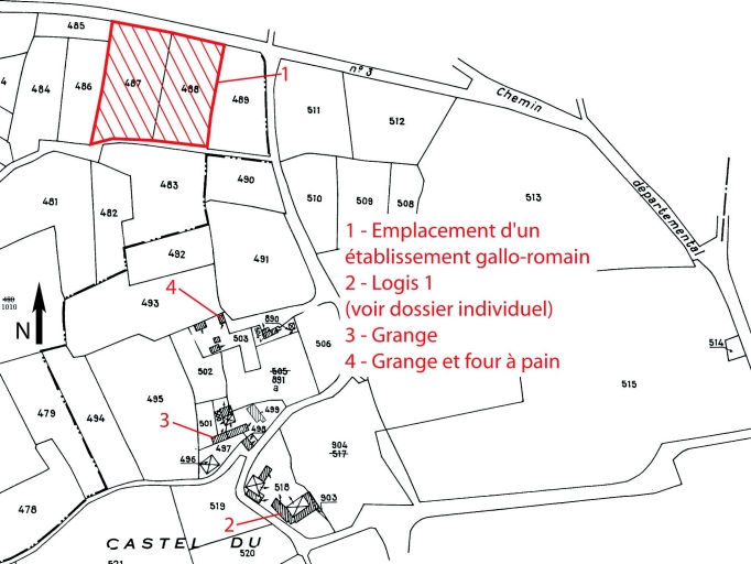 Localisation des éléments repérés (fond : cadastre de 1999)Immatriculation