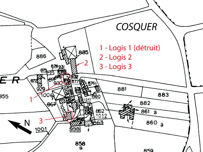 Localisation des éléments repérés (fond : cadastre de 1999)Immatriculation