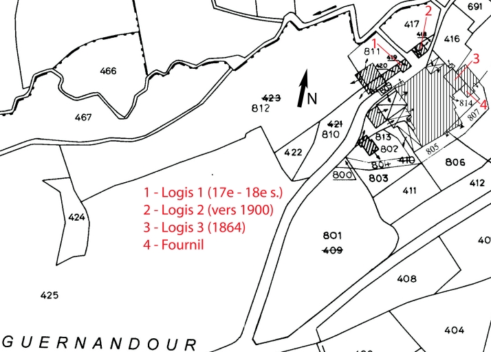 Localisation des éléments repérés (fond : cadastre de 1999)Immatriculation