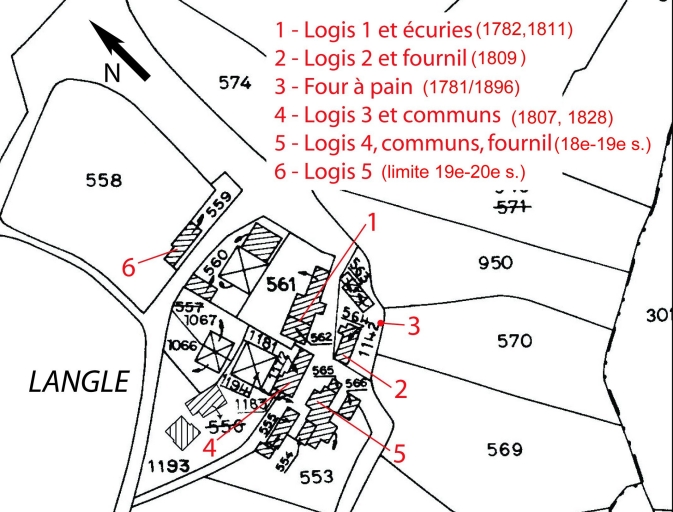 Localisation des éléments repérés (fond : cadastre de 1999)Immatriculation