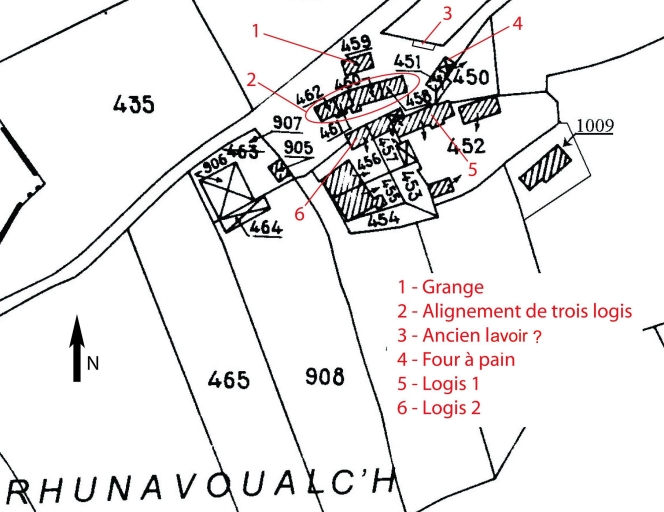 Localisation des éléments repérés (fond : cadastre de 1999)Immatriculation