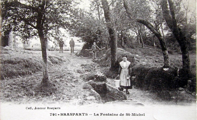 La fontaine Saint-Michel (disparue). Carte postale, vers 1910 (A. D. Finistère, 2 Fi 16)Immatriculation